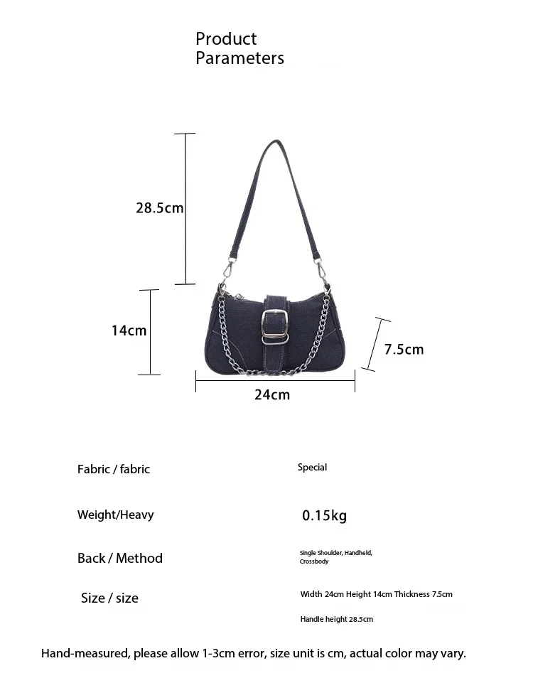 • 15kg Number of Handles/Straps : Single Item Width : 7cm Closure Type : Zipper Largura: 24cm /Altura: 14cm/ Espessura: 7cm Altura do cabo: 28 cm Material: Jeans zí