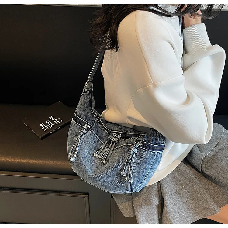 Traga um toque despojado e autêntico ao seu look com a nossa Bolsa Jeans Denim. Perfeita para mulheres modernas que adoram a versatilidade do tecido mais clássico do mundo. Combinando com praticamente qualquer peça do seu guarda-roupa, ela oferece um visual jovem, resistente e super prático para todas as ocasiões.