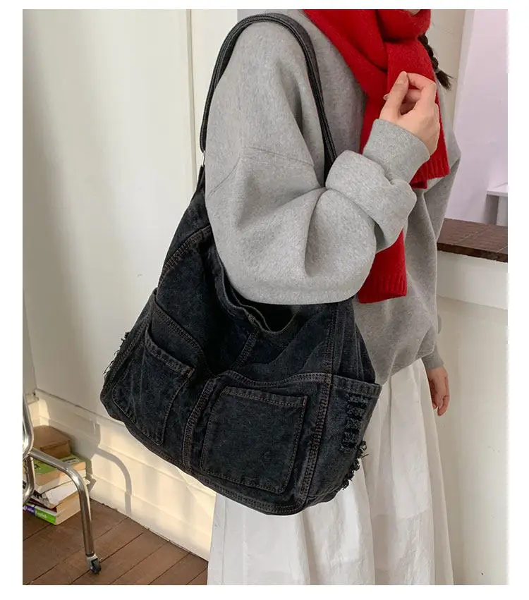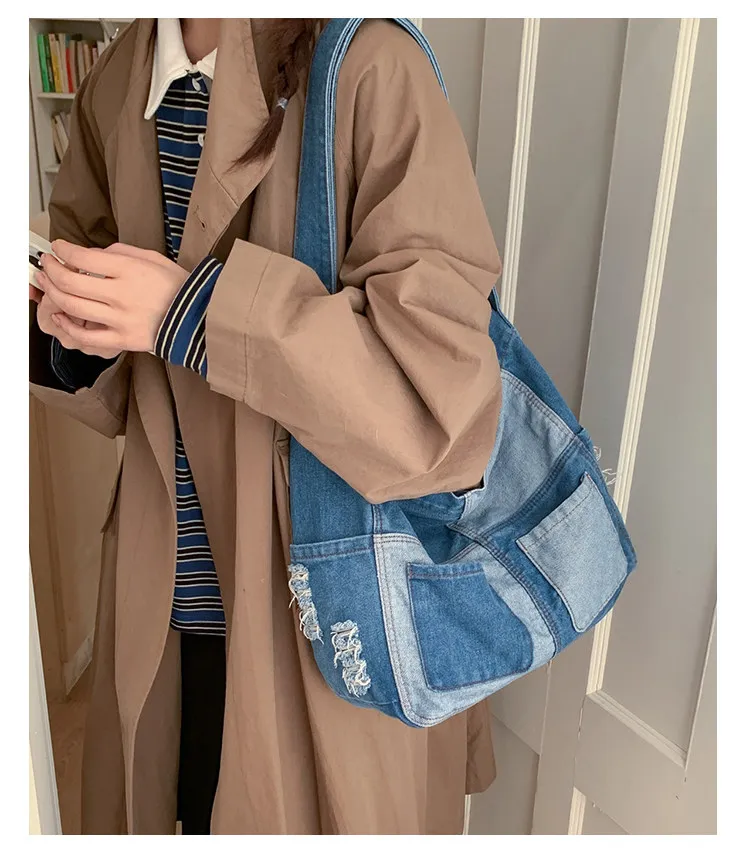 Traga um toque despojado e autêntico ao seu look com a nossa Bolsa Jeans Denim. Perfeita para mulheres modernas que adoram a versatilidade do tecido mais clássico do mundo. Combinando com praticamente qualquer peça do seu guarda-roupa, ela oferece um visual jovem, resistente e super prático para todas as ocasiões.