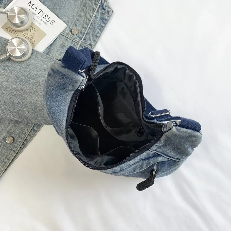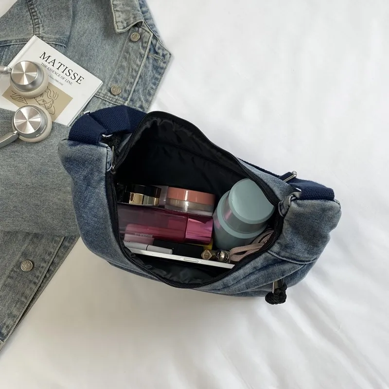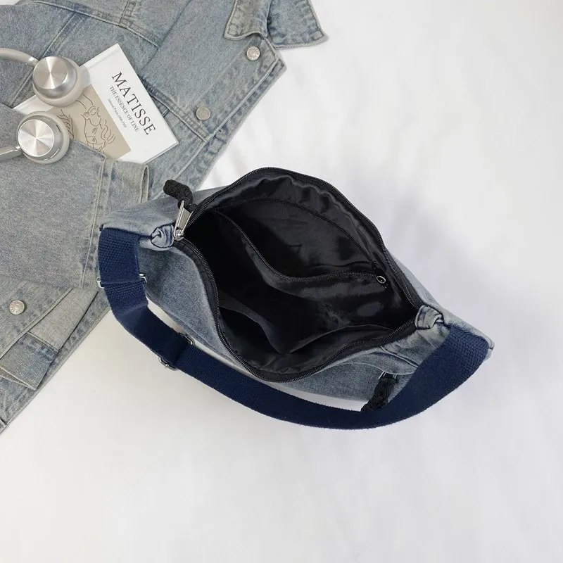 Traga um toque despojado e autêntico ao seu look com a nossa Bolsa Jeans Denim. Perfeita para mulheres modernas que adoram a versatilidade do tecido mais clássico do mundo. Combinando com praticamente qualquer peça do seu guarda-roupa, ela oferece um visual jovem, resistente e super prático para todas as ocasiões.