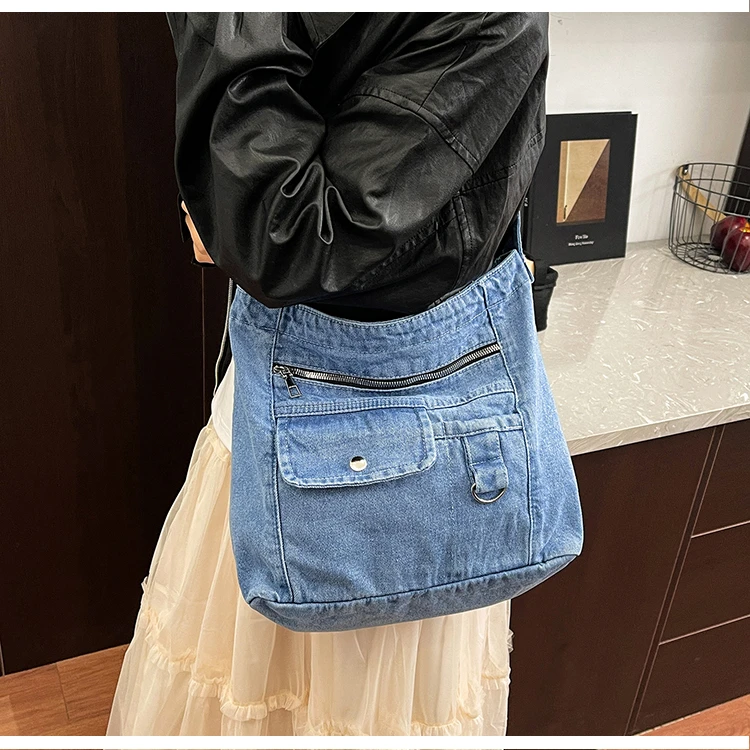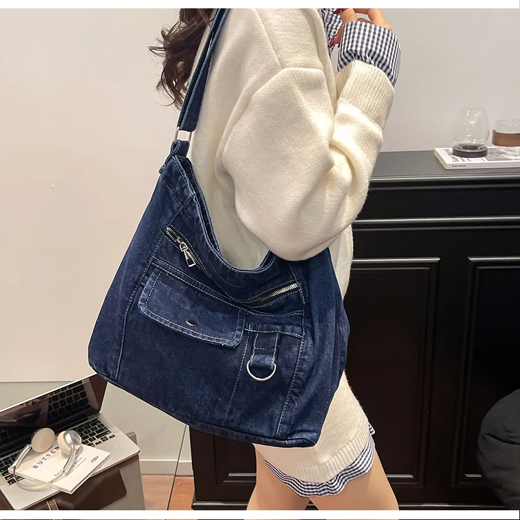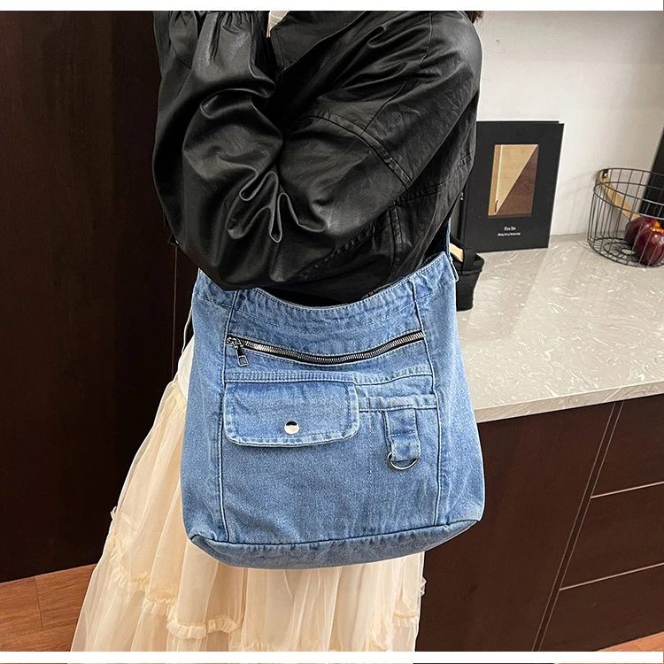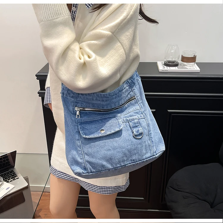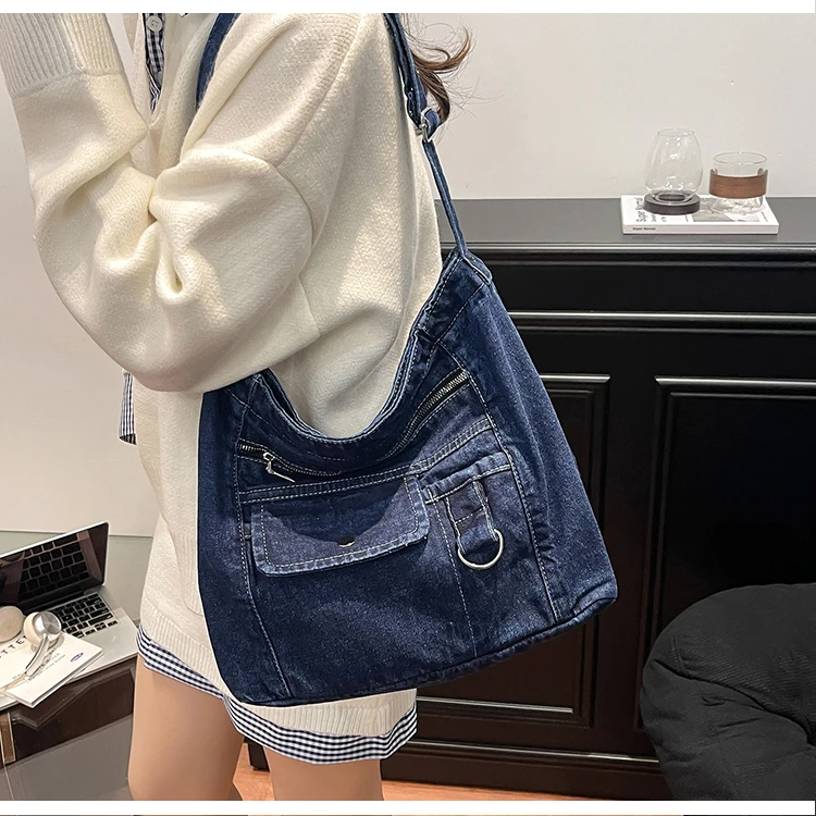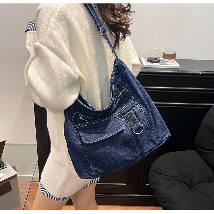 Traga um toque despojado e autêntico ao seu look com a nossa Bolsa Jeans Denim. Perfeita para mulheres modernas que adoram a versatilidade do tecido mais clássico do mundo. Combinando com praticamente qualquer peça do seu guarda-roupa, ela oferece um visual jovem, resistente e super prático para todas as ocasiões.