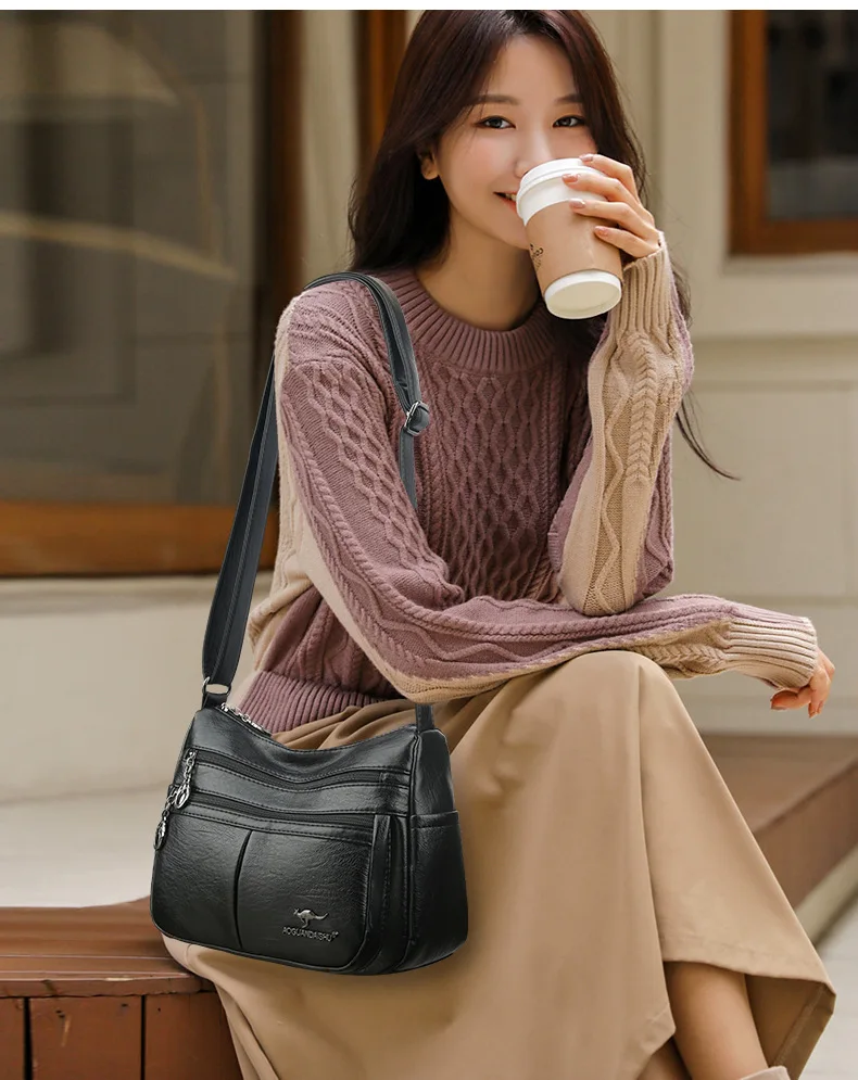 Esta bolsa crossbody feminina exala uma vibração urbana e minimalista, perfeita para a mulher moderna em movimento.