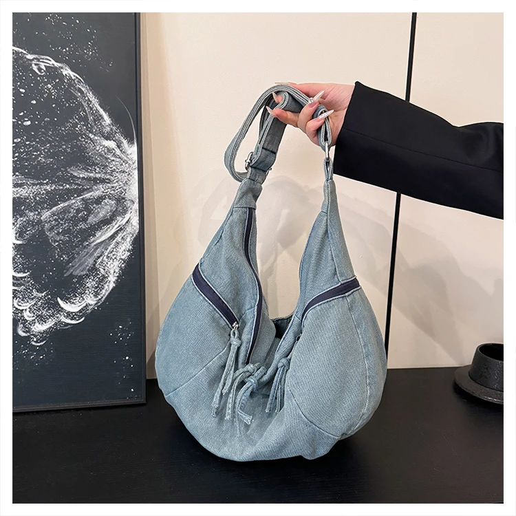 Traga um toque despojado e autêntico ao seu look com a nossa Bolsa Jeans Denim. Perfeita para mulheres modernas que adoram a versatilidade do tecido mais clássico do mundo. Combinando com praticamente qualquer peça do seu guarda-roupa, ela oferece um visual jovem, resistente e super prático para todas as ocasiões.