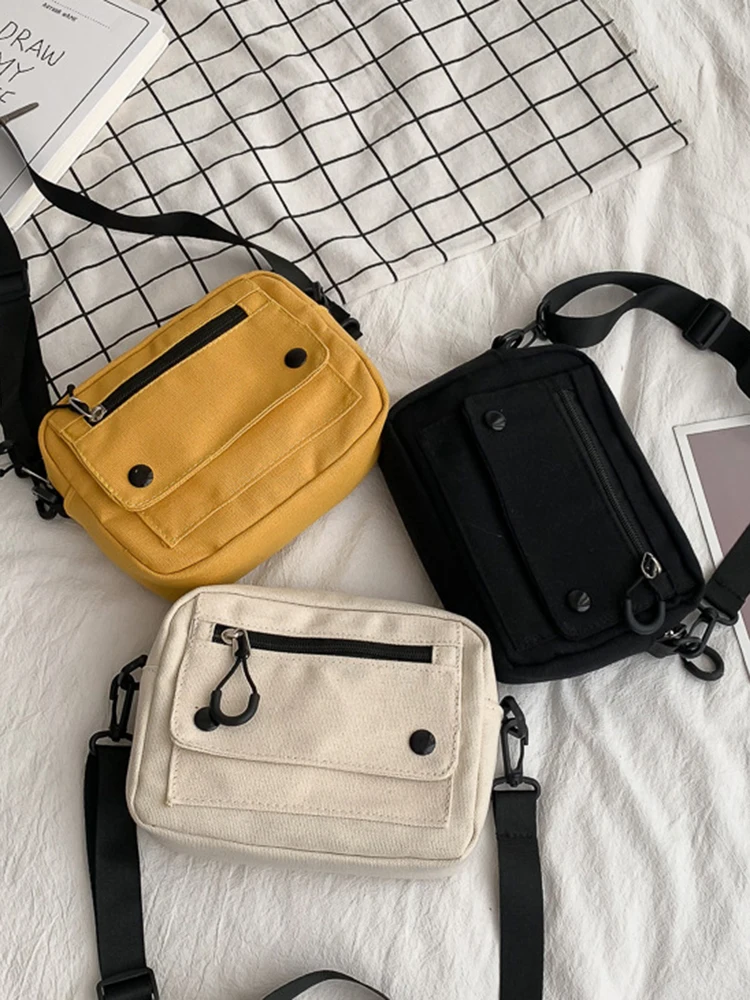Mulheres bolsas de lona coreano mini estudante saco telefone celular simples pequeno crossbody casual senhoras zíper bolsa ombro