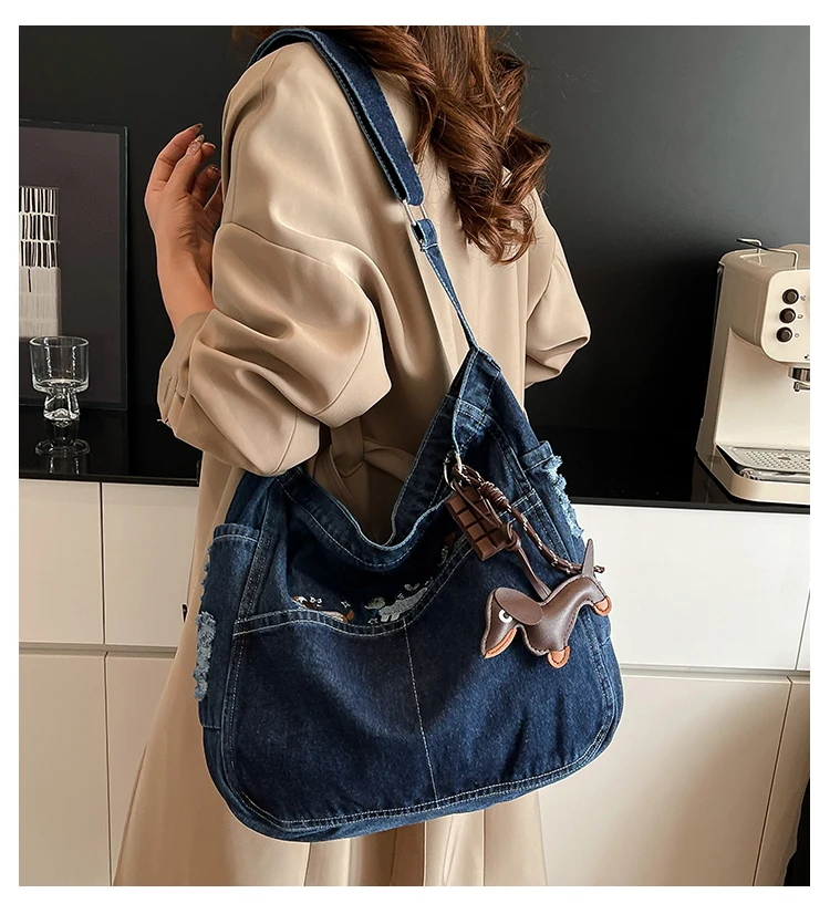 Traga um toque despojado e autêntico ao seu look com a nossa Bolsa Jeans Denim. Perfeita para mulheres modernas que adoram a versatilidade do tecido mais clássico do mundo. Combinando com praticamente qualquer peça do seu guarda-roupa, ela oferece um visual jovem, resistente e super prático para todas as ocasiões.