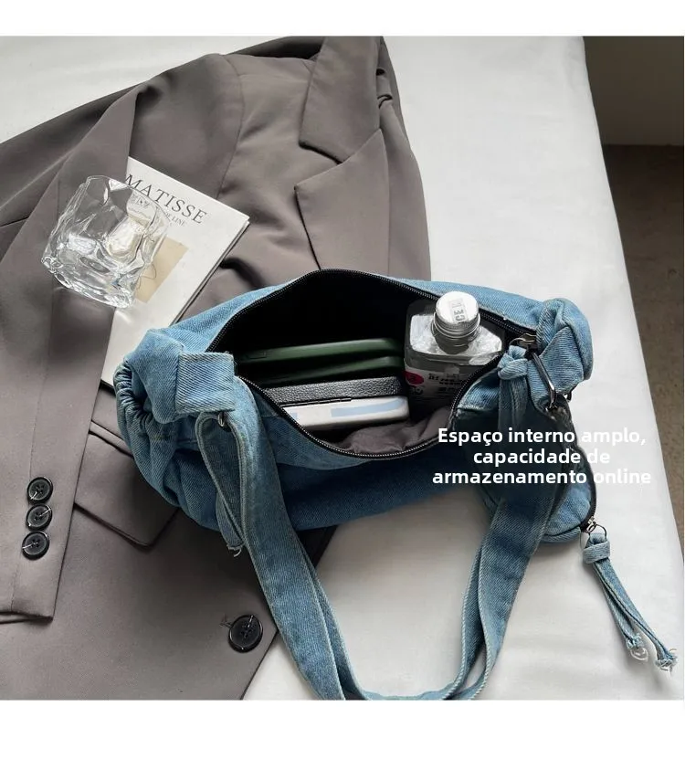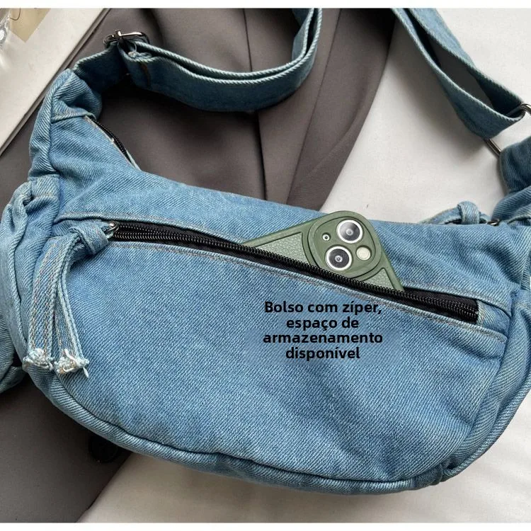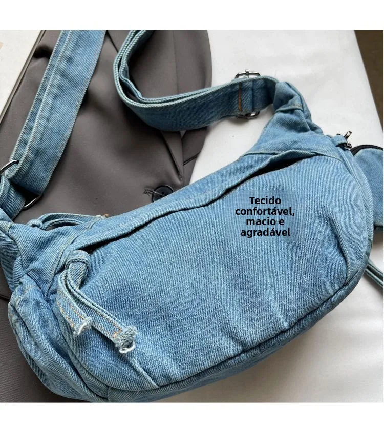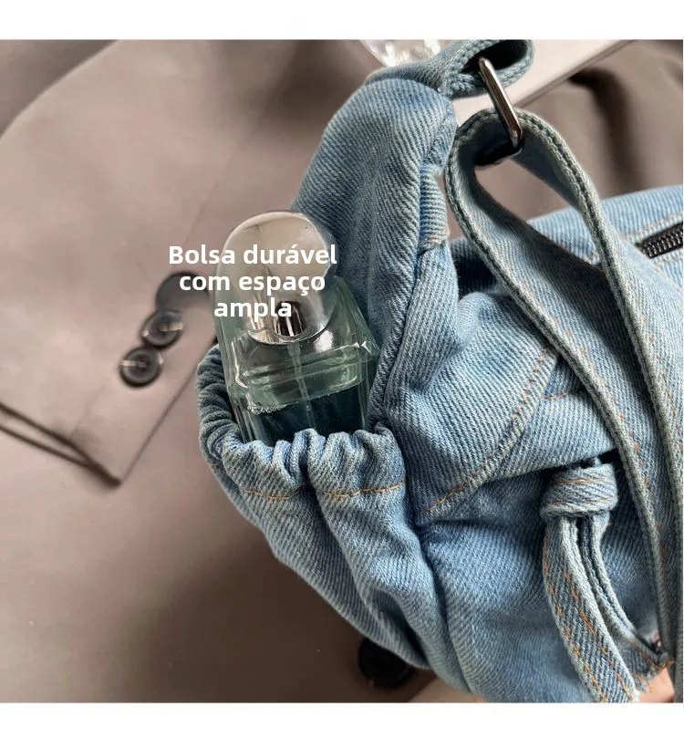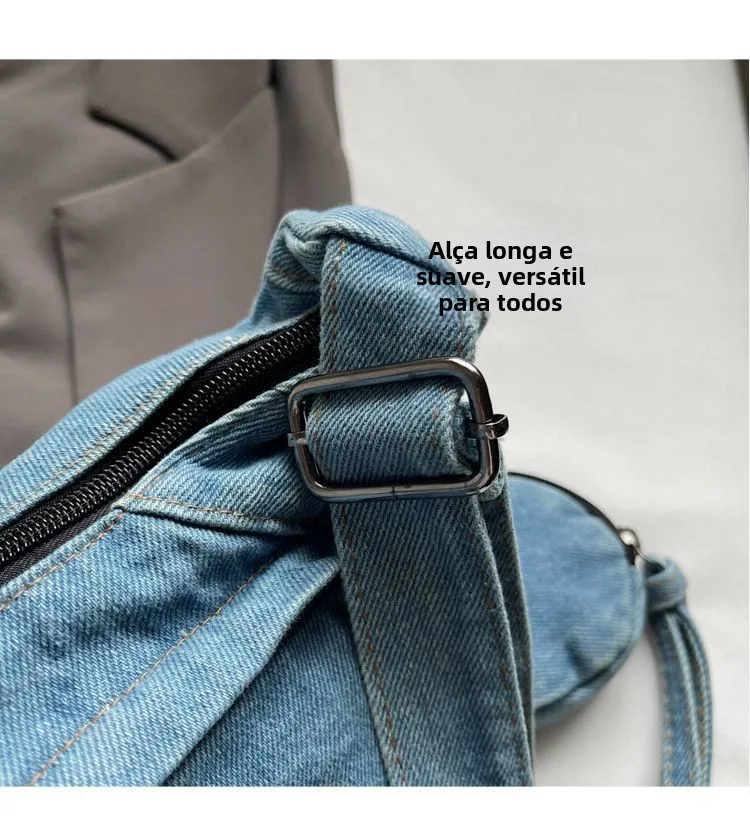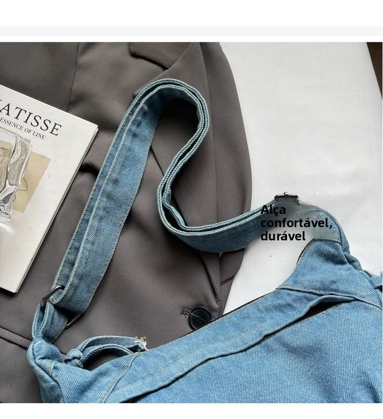 Traga um toque despojado e autêntico ao seu look com a nossa Bolsa Jeans Denim. Perfeita para mulheres modernas que adoram a versatilidade do tecido mais clássico do mundo. Combinando com praticamente qualquer peça do seu guarda-roupa, ela oferece um visual jovem, resistente e super prático para todas as ocasiões.