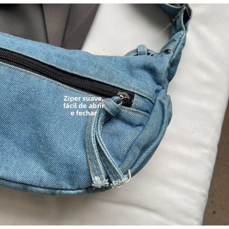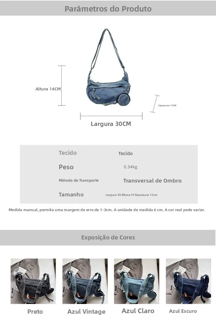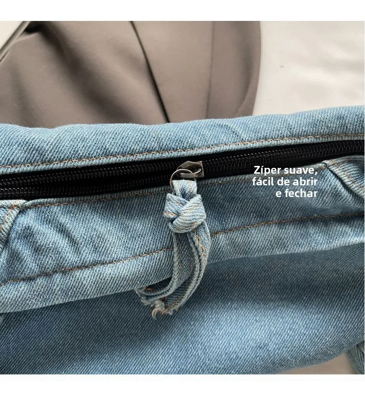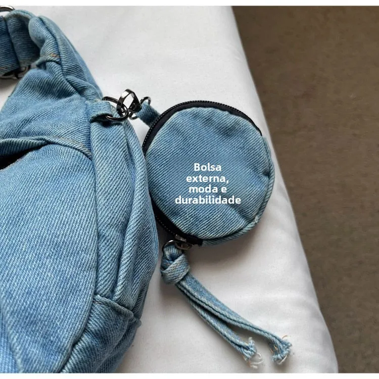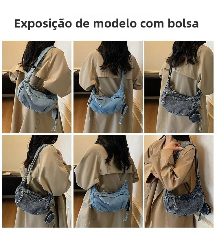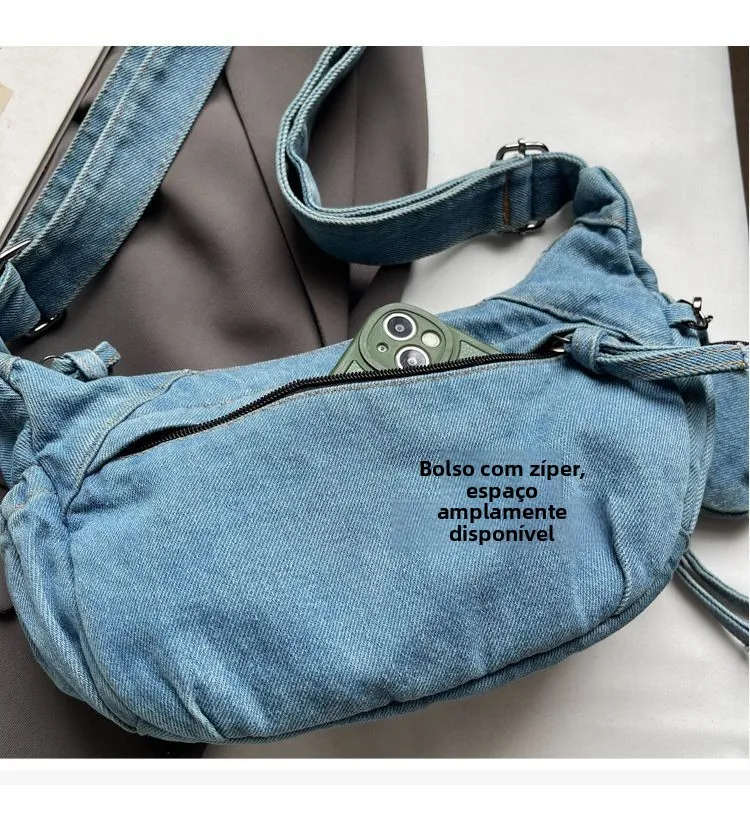Traga um toque despojado e autêntico ao seu look com a nossa Bolsa Jeans Denim. Perfeita para mulheres modernas que adoram a versatilidade do tecido mais clássico do mundo. Combinando com praticamente qualquer peça do seu guarda-roupa, ela oferece um visual jovem, resistente e super prático para todas as ocasiões.