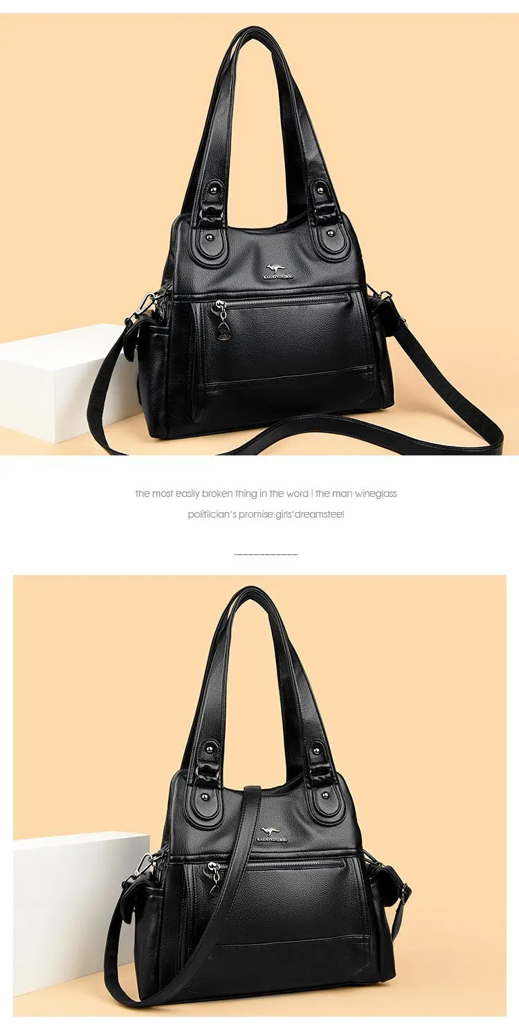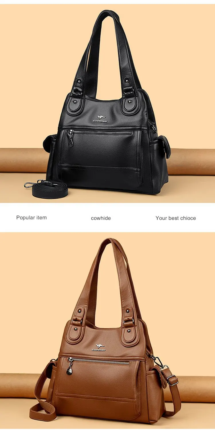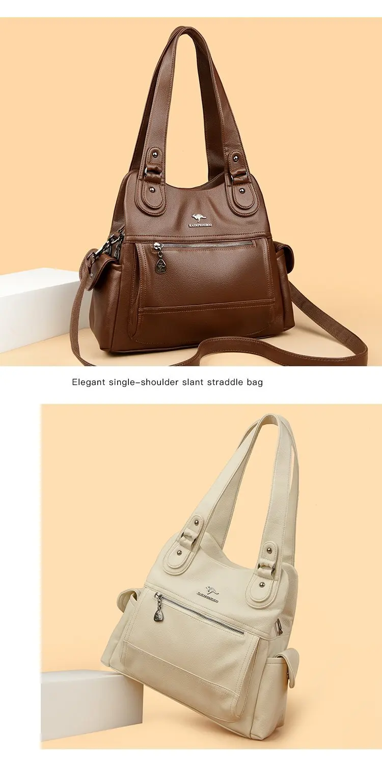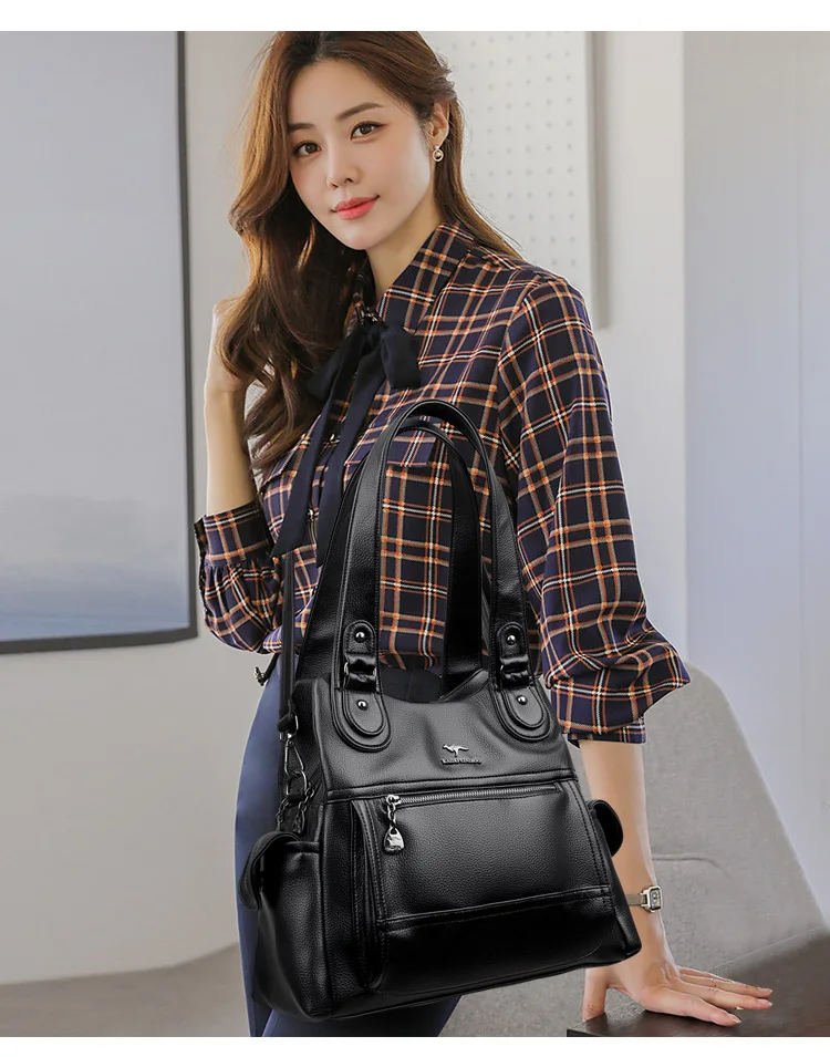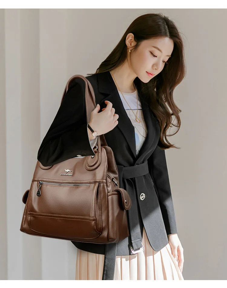 Feita com material PU premium, esta sacola oferece durabilidade e um acabamento elegante, perfeita para o uso diário.