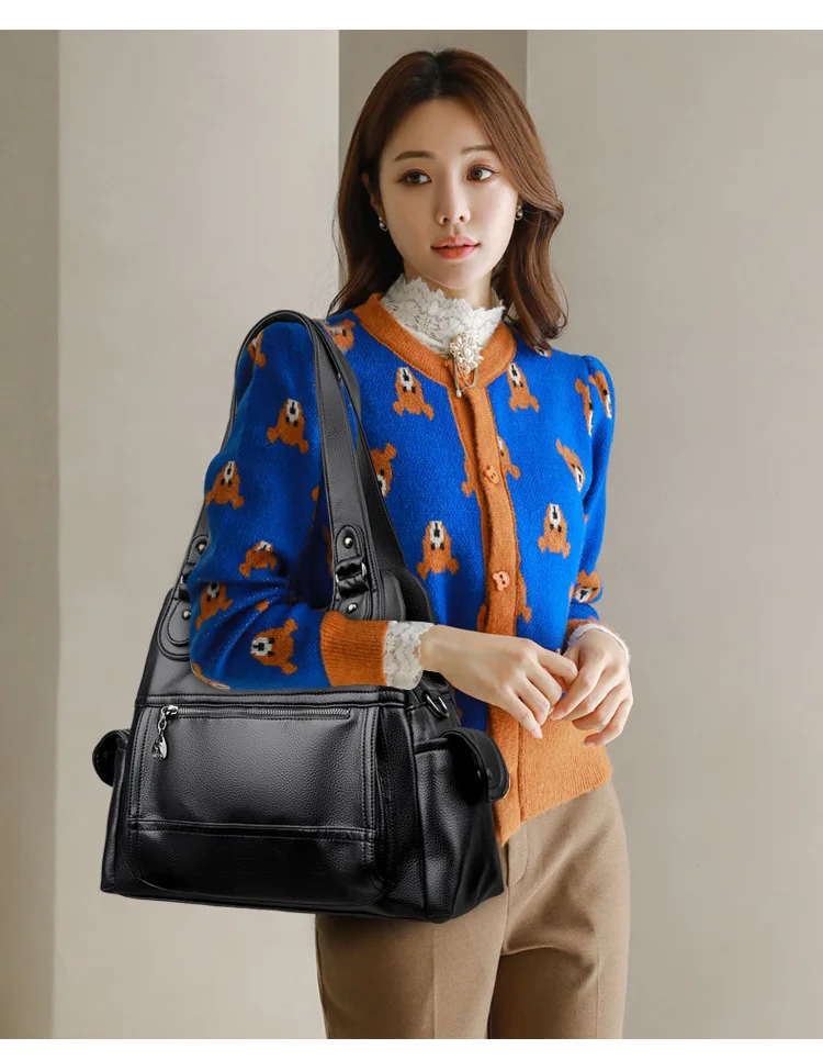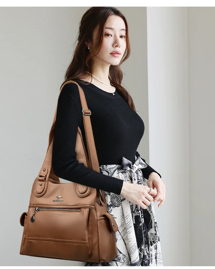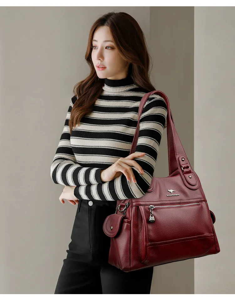 O design de alça única proporciona conforto ao mesmo tempo que garante que a bolsa permaneça segura no ombro durante o movimento.