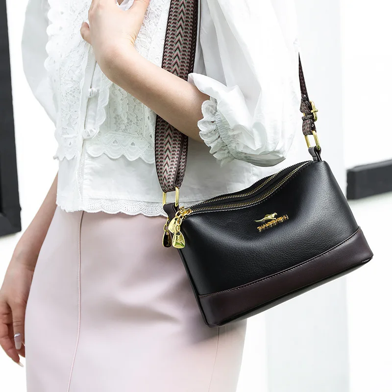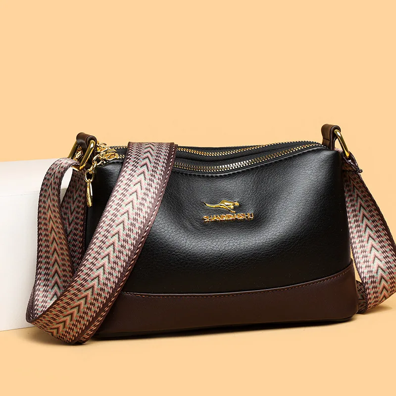 Fabricada em material PU macio, esta bolsa oferece uma sensação luxuosa e durabilidade, garantindo que possa suportar o uso diário.