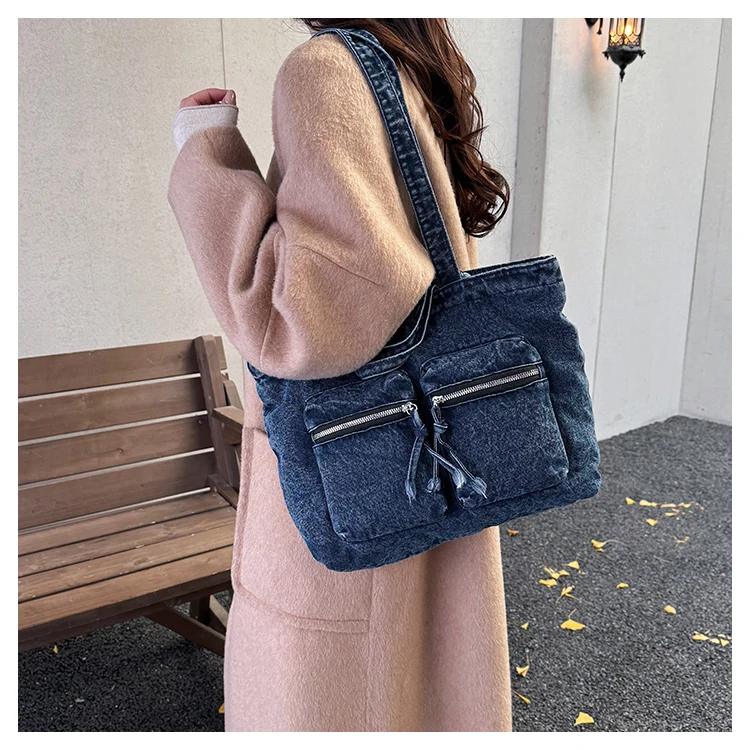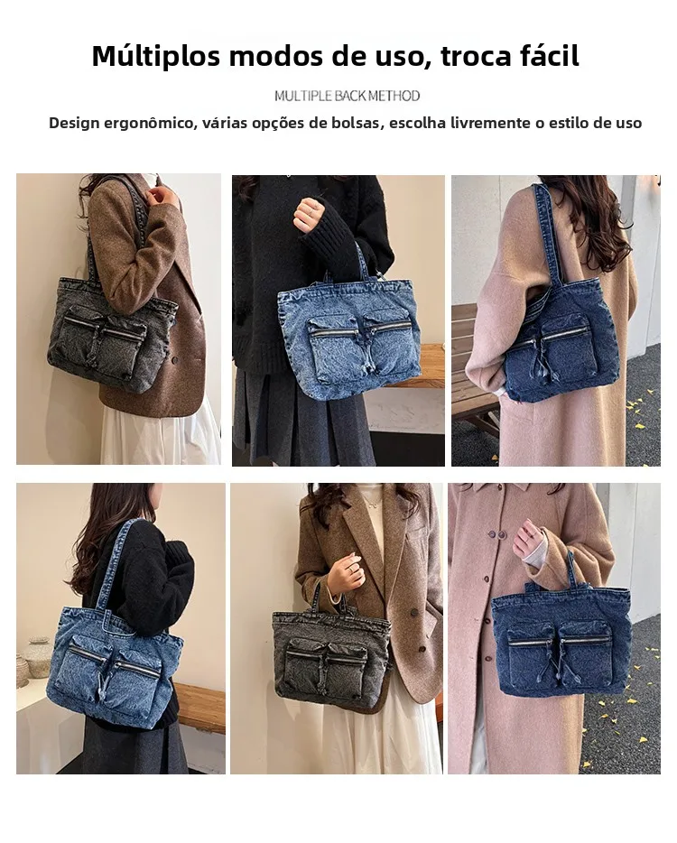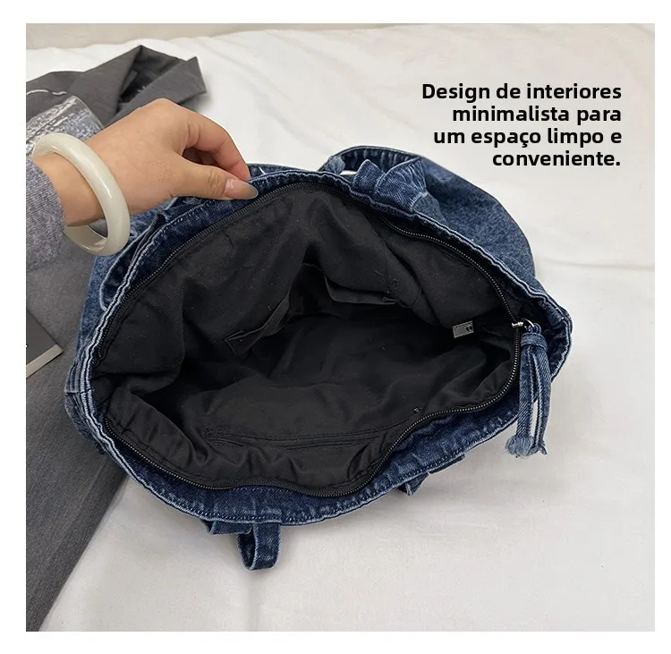 Traga um toque despojado e autêntico ao seu look com a nossa Bolsa Jeans Denim. Perfeita para mulheres modernas que adoram a versatilidade do tecido mais clássico do mundo. Combinando com praticamente qualquer peça do seu guarda-roupa, ela oferece um visual jovem, resistente e super prático para todas as ocasiões.