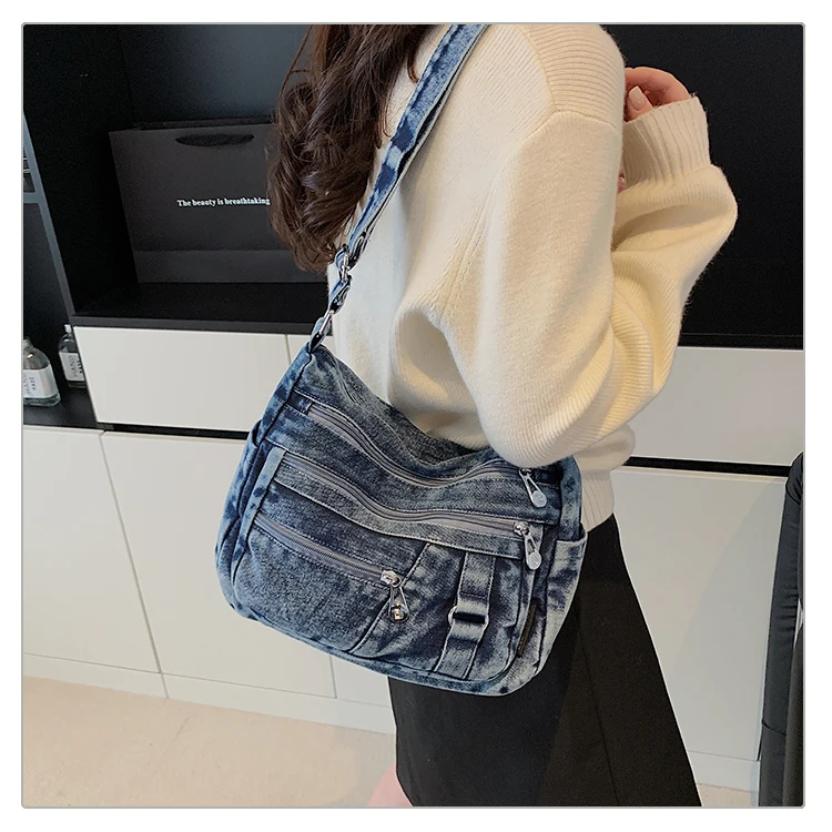 Traga um toque despojado e autêntico ao seu look com a nossa Bolsa Jeans Denim. Perfeita para mulheres modernas que adoram a versatilidade do tecido mais clássico do mundo. Combinando com praticamente qualquer peça do seu guarda-roupa, ela oferece um visual jovem, resistente e super prático para todas as ocasiões.