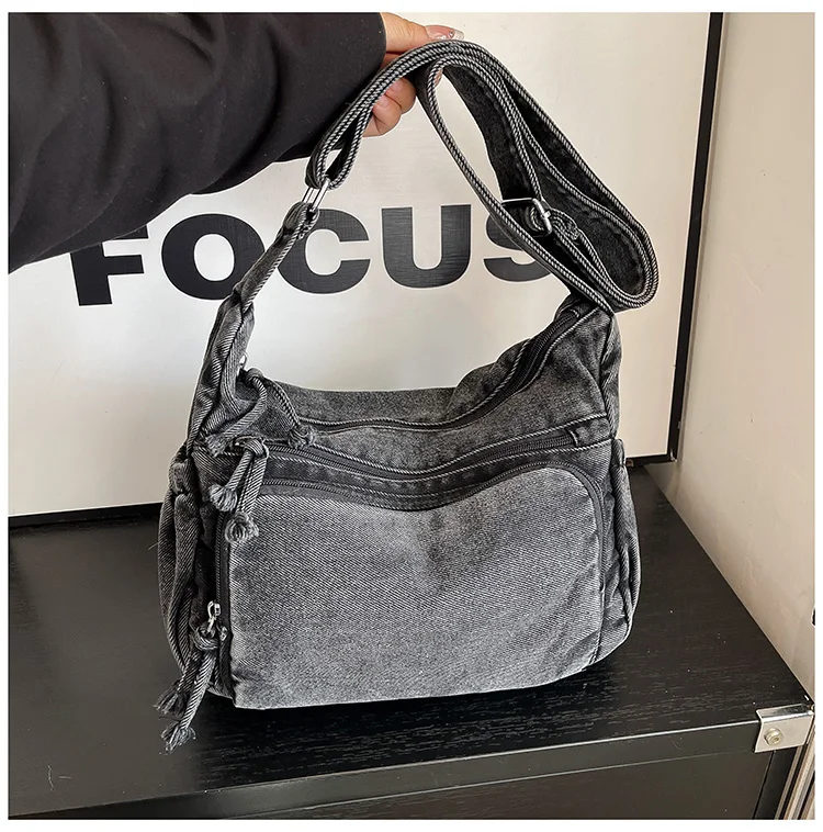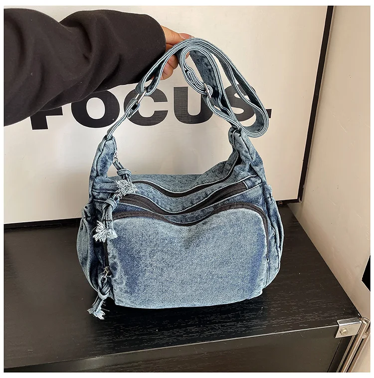 Traga um toque despojado e autêntico ao seu look com a nossa Bolsa Jeans Denim. Perfeita para mulheres modernas que adoram a versatilidade do tecido mais clássico do mundo. Combinando com praticamente qualquer peça do seu guarda-roupa, ela oferece um visual jovem, resistente e super prático para todas as ocasiões.