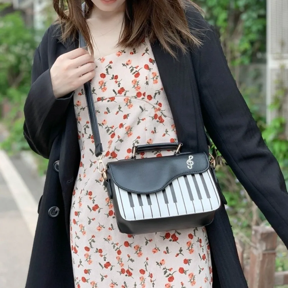 1. **Stylish Piano Design**: This PU leather crossbody bag features a unique piano-inspired design, perfect for music lovers and fashion enthusiasts alike.