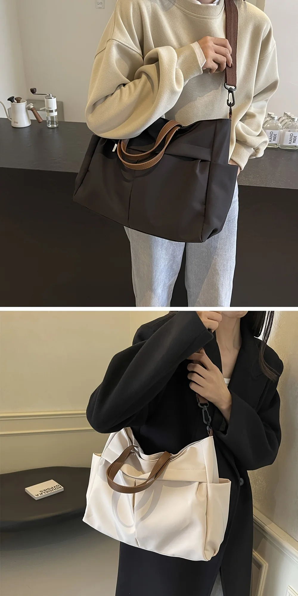 Sua estética minimalista e cor neutra o tornam um?acessório universal?— combine com um vestido elegante para uma noite fora, ou com jeans casuais para um dia relaxante.Os detalhes em couro marrom adicionam um toque de elegância, elevando qualquer look.