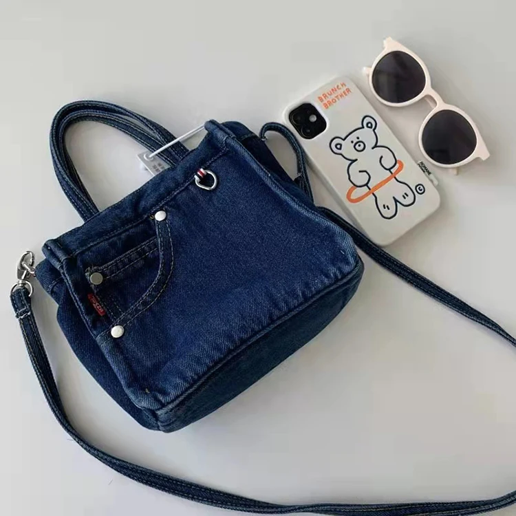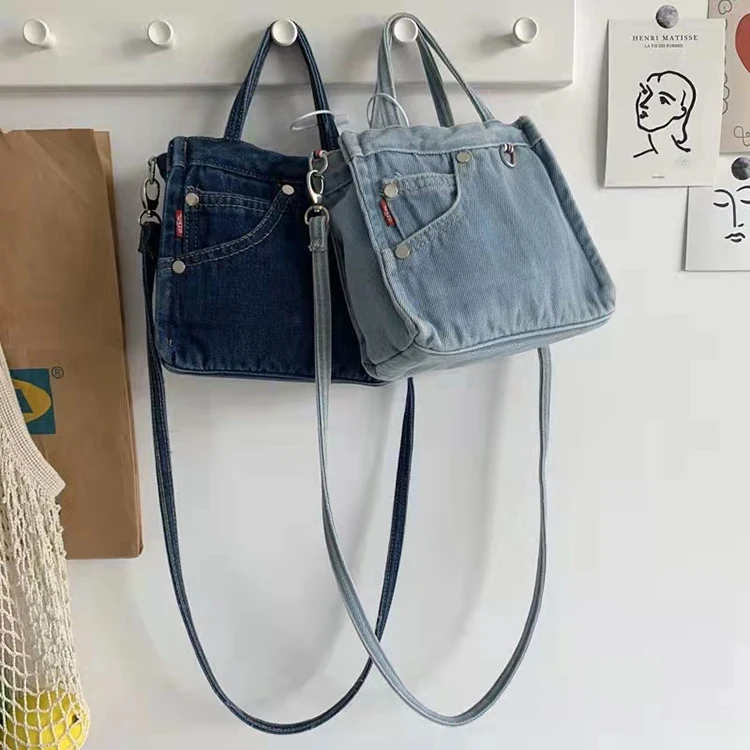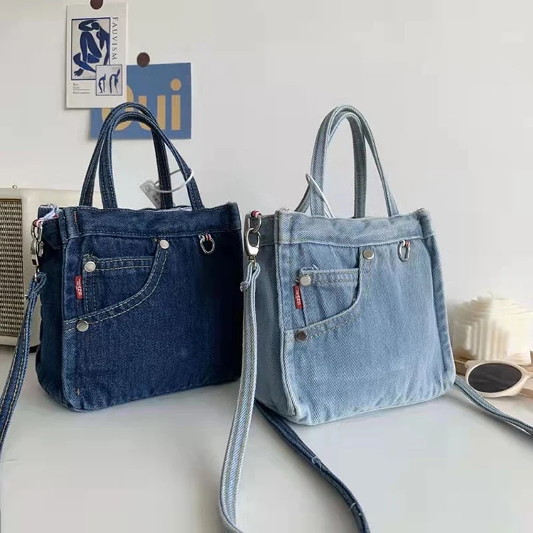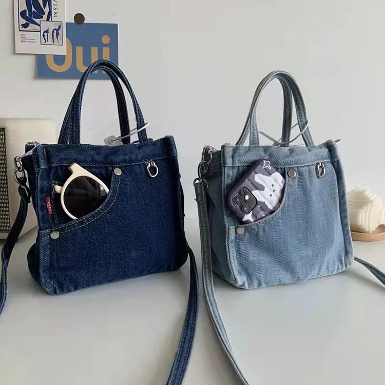 Original japonês e coreano requintado mini saco jeans ins versão coreana da moda literária legal compras all-match bolsa tote feminina