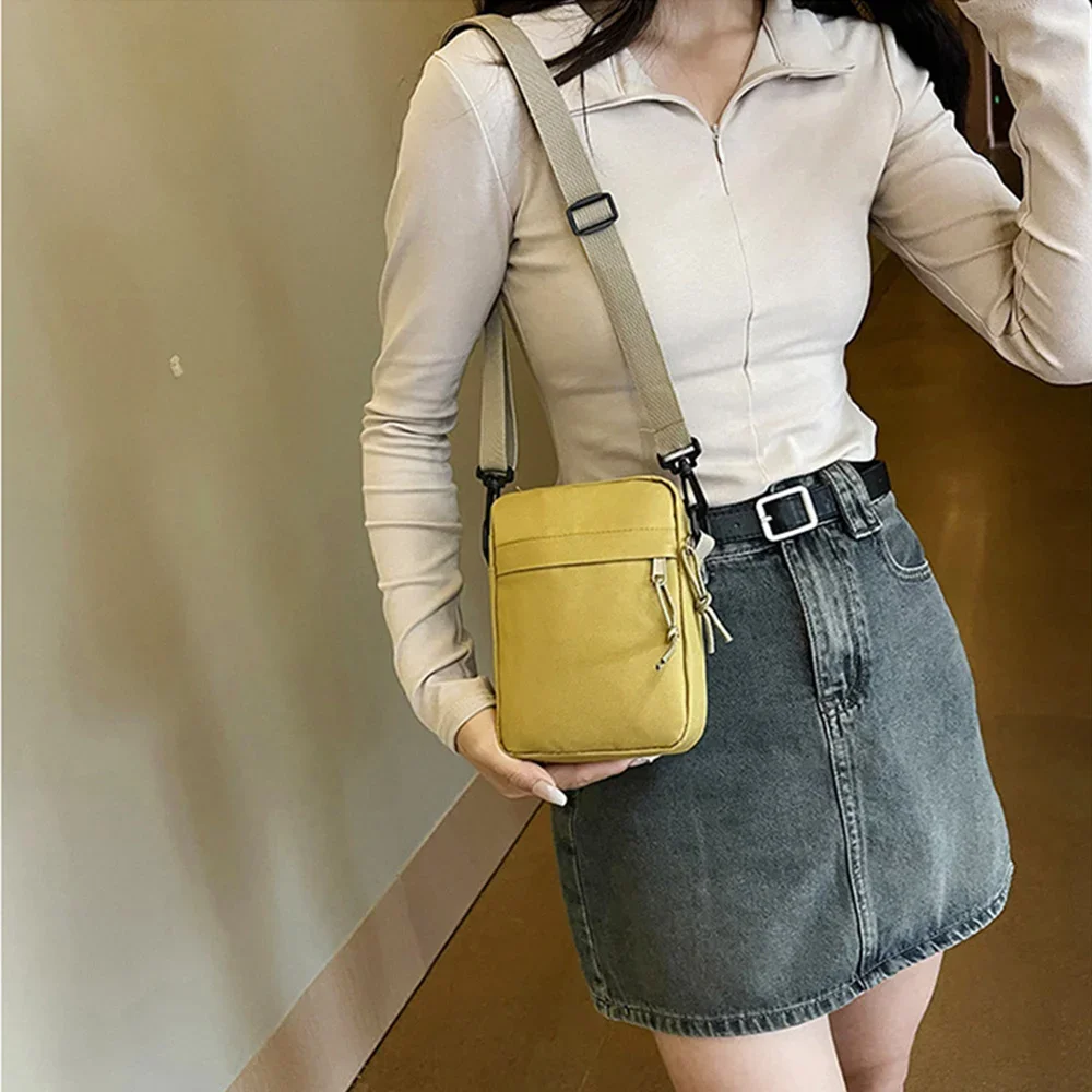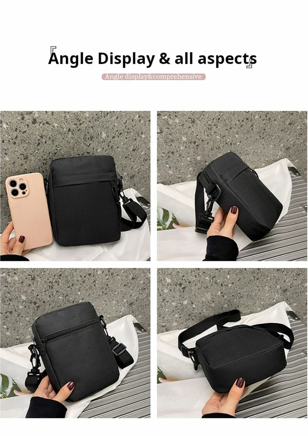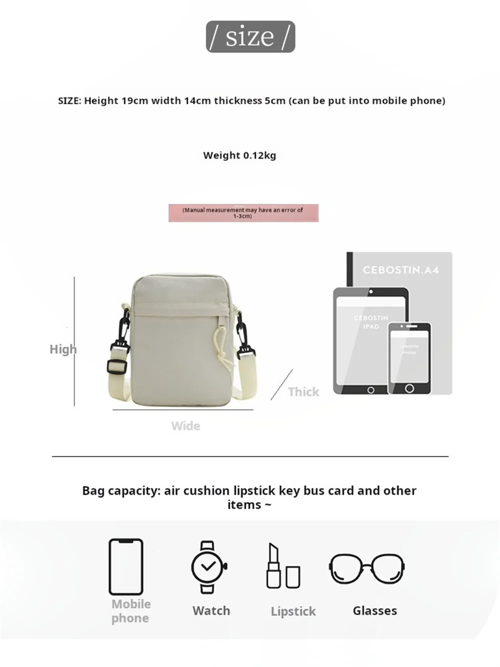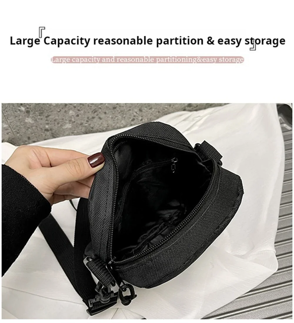 Esta bolsa é perfeita para guardar pequenos itens.O amplo bolso frontal oferece fácil acesso a itens essenciais como lenços de papel, canetas e cadernos A6 finos.Com ampla utilidade de armazenamento, esta bolsa tipo estilingue pode conter tudo, desde dinheiro e cartões até chaves, cosméticos, fitas de maquiagem, escovas de cabelo, carteiras e óculos de sol.